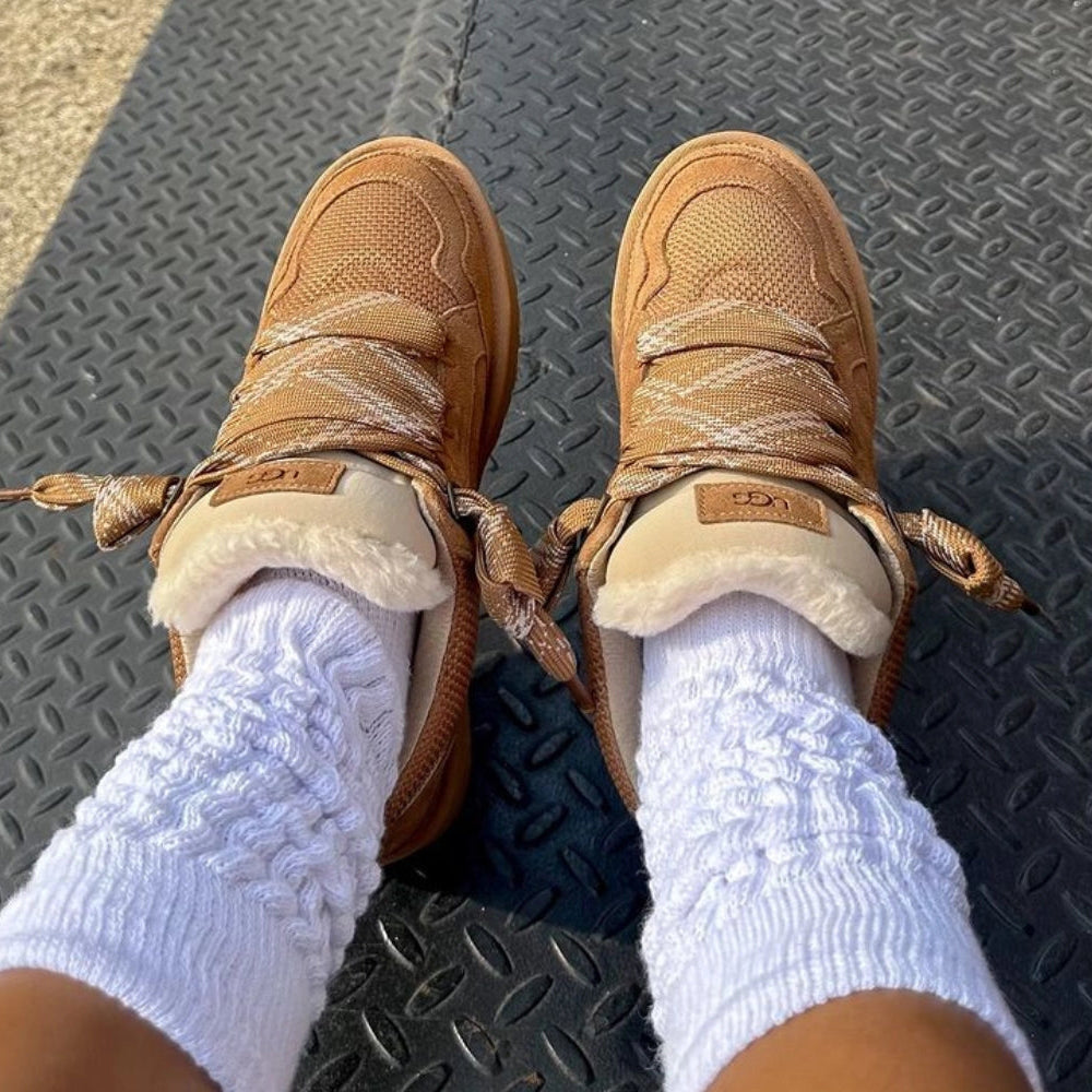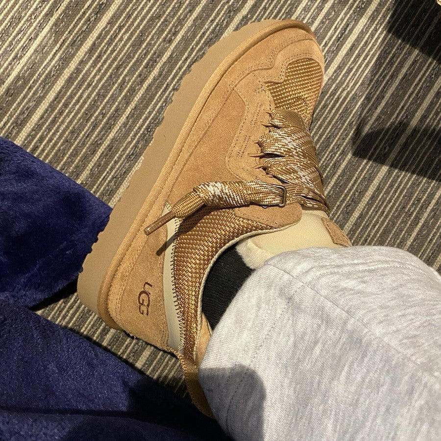 Miękka zamsz, lekka siateczka i wyraziste sznurówki tworzą wyjątkowy wygląd. Każdy krok to jak chodzenie po chmurach – lekki, ale niezwykle stabilny. Dżinsy, spódnica czy dresy – te sneakersy natychmiast nadadzą każdej stylizacji modnego i niepowtarzalnego charakteru.